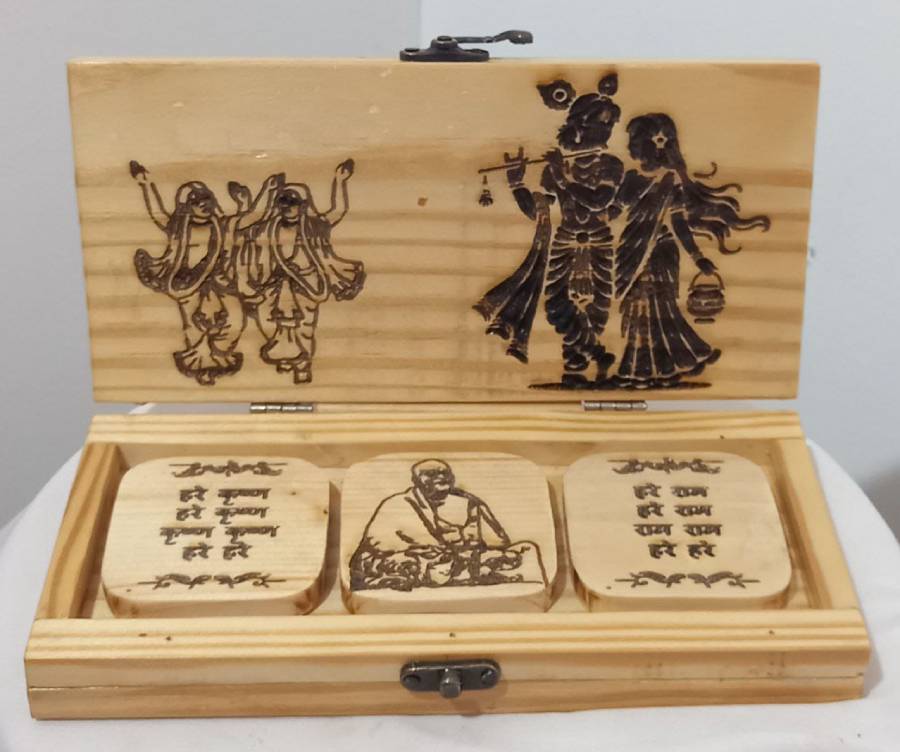 Crafted from high-quality pine wood, this elegant box features an intricately designed Krishna Darbaar image, a sacred mantra, and a depiction of Krishna Mandir. Together, these elements radiate harmony, peace, and spiritual strength. As a result, the box becomes much more than just a decorative piece—it’s a sacred companion.