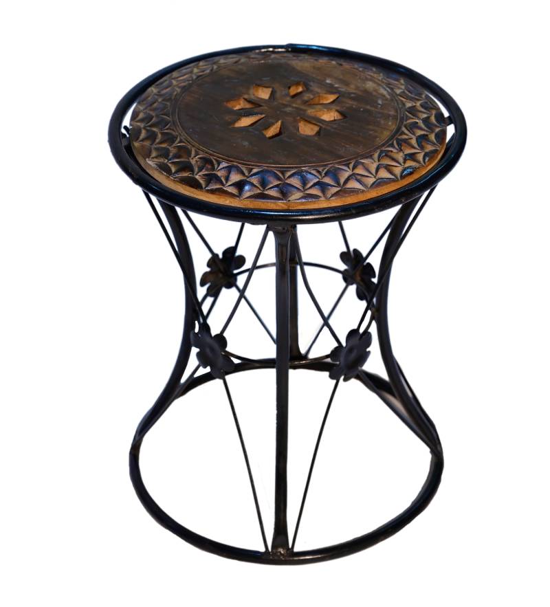 Add Rustic Charm with a Metal Base Wooden Stool (Handcrafted)