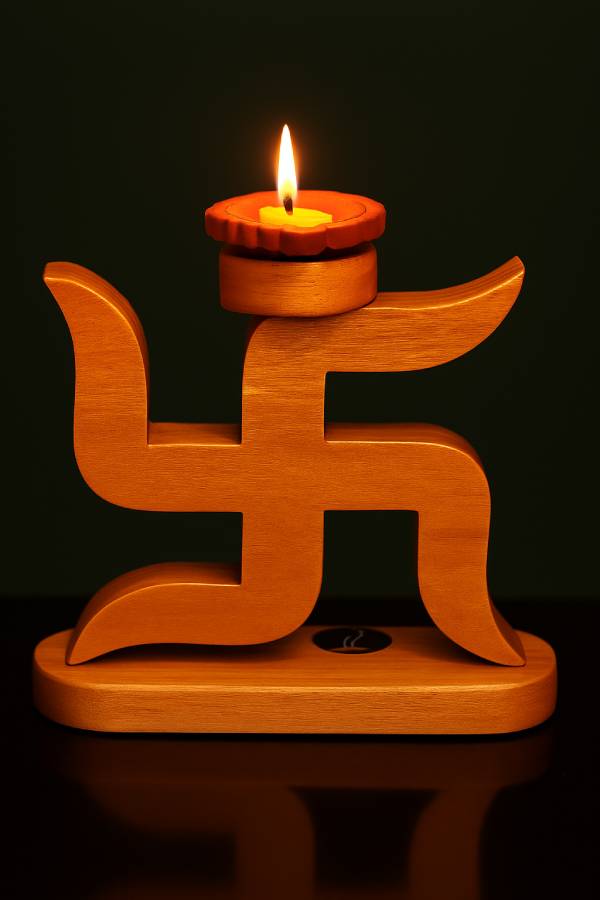 The Swastik Candle Stand stands out with its eco-friendly material and artisanal craftsmanship. Each stand is carefully made by skilled artisans, giving it a unique texture and finish that only natural wood can offer. The rustic tones of pallet wood enhance the earthy appeal, making it a perfect fit for both traditional and modern home décor themes.