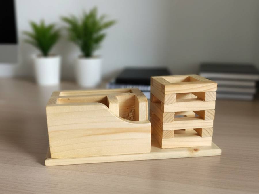 Organize in Style with a Pine Wood Pen and Card Holder